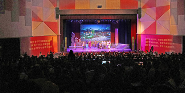 3月18日晚7時(shí),高雅藝術(shù)進(jìn)校園巡回演出經(jīng)典歌劇《洪湖赤衛(wèi)隊(duì)》在我校星空劇場(chǎng)傾情上演,黨委書記高華錦,副校長(zhǎng)楊莉,黨委副書記、副校長(zhǎng)王亞軍等領(lǐng)導(dǎo)出席,千余名師生共享此次視聽盛宴。