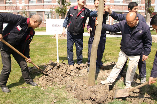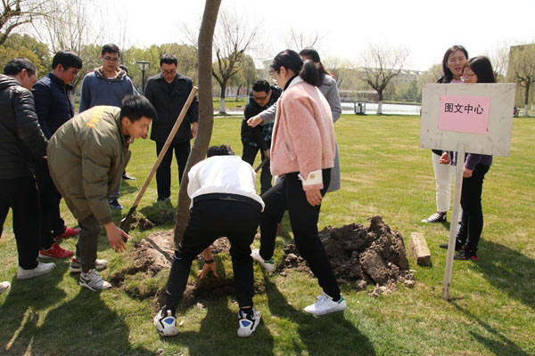 植樹現(xiàn)場(chǎng),校領(lǐng)導(dǎo)與師生代表熱情高漲、干勁十足。根據(jù)安排挖坑、埋土、澆水,分工明確,互相配合,活動(dòng)有序地進(jìn)行,場(chǎng)面氣氛活躍。