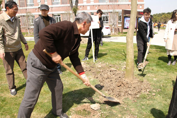 為進(jìn)一步倡導(dǎo)綠色生態(tài)環(huán)保理念,促進(jìn)環(huán)境育人內(nèi)涵建設(shè),3月12日中午,在第41個(gè)植樹節(jié)來(lái)臨之際,我校在音樂(lè)廣場(chǎng)區(qū)域隆重舉行植樹活動(dòng)。學(xué)校領(lǐng)導(dǎo)劉鶴霞、孫德彪、張?zhí)靻?、王淑華、楊昆呈及各職能部門、二級(jí)學(xué)院負(fù)責(zé)人和師生代表100余人出席活動(dòng)?;顒?dòng)由后勤保衛(wèi)處策劃組織,儀式由副校長(zhǎng)楊昆呈主持。