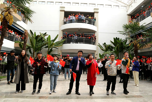 一顆顆紅心,表達(dá)的是對祖國的熱愛;一句句歌唱,吐露的是師生們的真情?!翱扉W活動非常精彩,特別振奮人心,能生活在這樣一個偉大的新時代,真的很幸福,祝福我們的祖國越來越強(qiáng)大!”圍觀的信息工程學(xué)院學(xué)生李玉剛告訴記者。