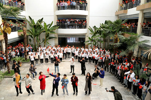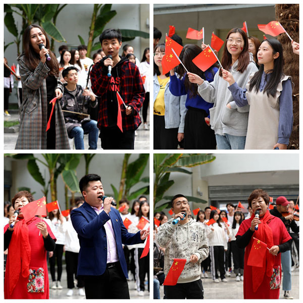 據(jù)悉,此次快閃活動由校黨委宣傳部、黨委學(xué)工部、校團(tuán)委共同策劃,學(xué)校大學(xué)生藝術(shù)團(tuán)、各二級學(xué)院和學(xué)生社團(tuán)的師生參與演出?;顒臃譃樗膫€攝制組,采用航拍、延時攝影等攝制技術(shù),多機(jī)位、多角度記錄了現(xiàn)場的精彩。此次活動以廣大師生喜聞樂見的形式謳歌新中國成立70年來取得的偉大成就,弘揚(yáng)踐行愛國奮斗精神,濃郁校園文化氛圍,活躍美育環(huán)境,激發(fā)廣大師生自覺把個人理想融入國家發(fā)展偉業(yè)和學(xué)校發(fā)展實(shí)踐之中,為決勝全面建成小康社會、實(shí)現(xiàn)中華民族偉大復(fù)興中國夢作出應(yīng)有貢獻(xiàn)。