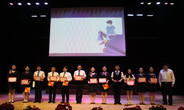 在合唱比賽間隙,學院領導為本次“承五四精神,揚青春風采”五四系列活動獲獎學院頒發(fā)了獲獎證書和獎品,對這一學年中表現(xiàn)優(yōu)秀的學員進行了表彰,向18春季班級的優(yōu)秀學員頒發(fā)了獎學金。