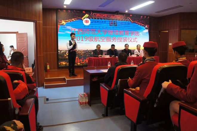 2019年11月21日下午2點(diǎn)30分,江西師范大學(xué)繼續(xù)教育學(xué)院航空服務(wù)專業(yè)在成教大樓603隆重舉行19級學(xué)員制服授裝儀式。本次活動主要是為了讓學(xué)生感受到制服對于職業(yè)的必要性和專業(yè)性,當(dāng)學(xué)生穿上航空制服的那刻,是神圣的,他們必須具備一個民航人的責(zé)任感和敬畏感,敬畏生命,敬畏責(zé)任,敬畏規(guī)章。