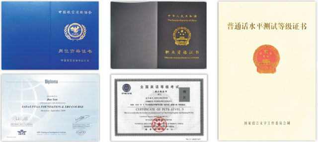 可根據(jù)所學專業(yè),參加相關部門或行業(yè)組織的考試,成績合格,可取得相應的職業(yè)資格證書,如公共英語三級、普通話等級證書、安檢證書、民航客運證、急救證、海員證書、禮儀證書、茶藝證書、民航客艙乘務員培訓合格證等。