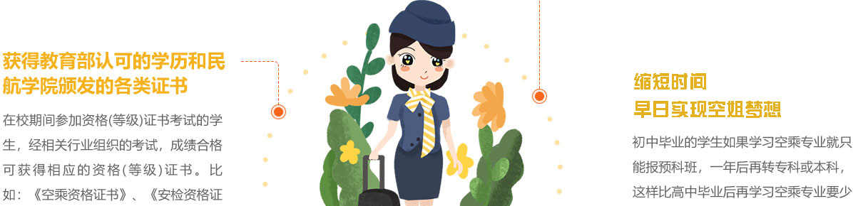 這是個(gè)令很多初中生及其家長(zhǎng)頭疼的問(wèn)題,很多初中畢業(yè)生,不想把自己限制于一成不變初升高這樣一成不變的升學(xué)模式中,但他們卻還有自己的夢(mèng)想,希望能按照他們的興趣愛(ài)好學(xué)自己想學(xué)的專(zhuān)業(yè)。空乘專(zhuān)業(yè)越來(lái)越被中高考學(xué)生所喜愛(ài),初中生意愿報(bào)空乘專(zhuān)業(yè)的也越來(lái)越越多,那么,初中生能否學(xué)習(xí)空乘專(zhuān)業(yè)?初中生能否跨過(guò)高中直接上大學(xué)學(xué)習(xí)呢?初中生可以通過(guò)報(bào)考航空院校開(kāi)設(shè)的航空預(yù)科來(lái)實(shí)現(xiàn),通過(guò)預(yù)科階段的過(guò)渡學(xué)習(xí)再上航空院??粘藢?zhuān)業(yè)的專(zhuān)本科課程。預(yù)科階段學(xué)習(xí)時(shí)間為1年,1年除學(xué)習(xí)高中階段基礎(chǔ)課程外還有空乘基本專(zhuān)業(yè)課程學(xué)習(xí),更早的實(shí)現(xiàn)學(xué)生們的空姐愿望。